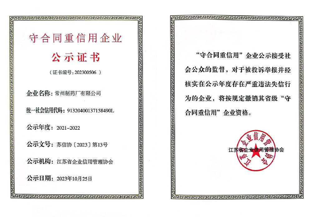 江蘇省守合同重信用企業(yè)