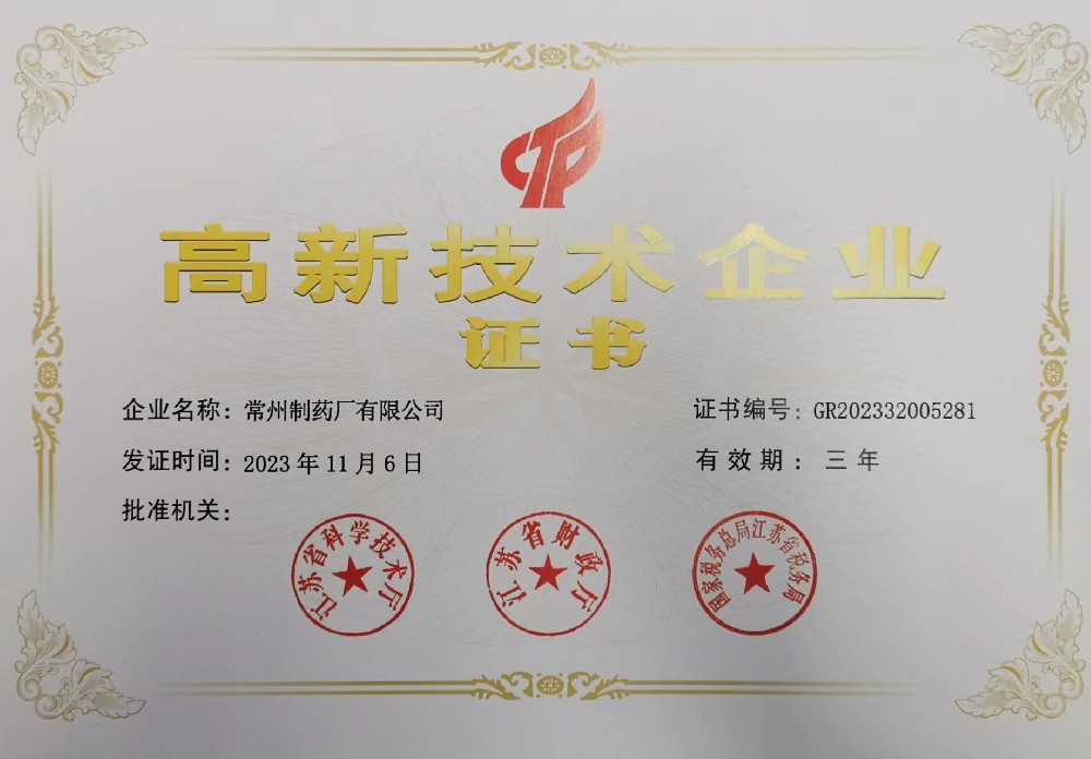 高新技術企業(yè)證書